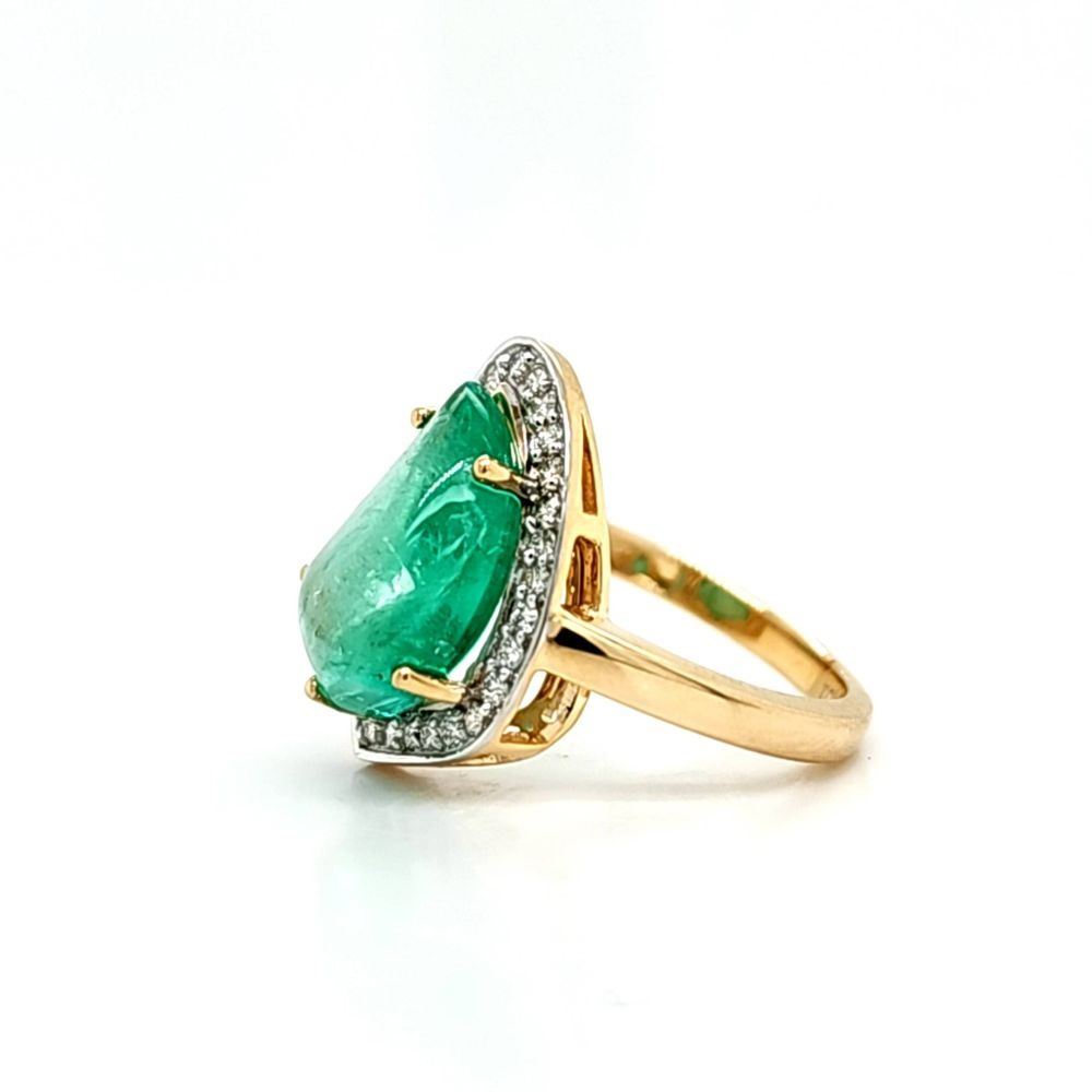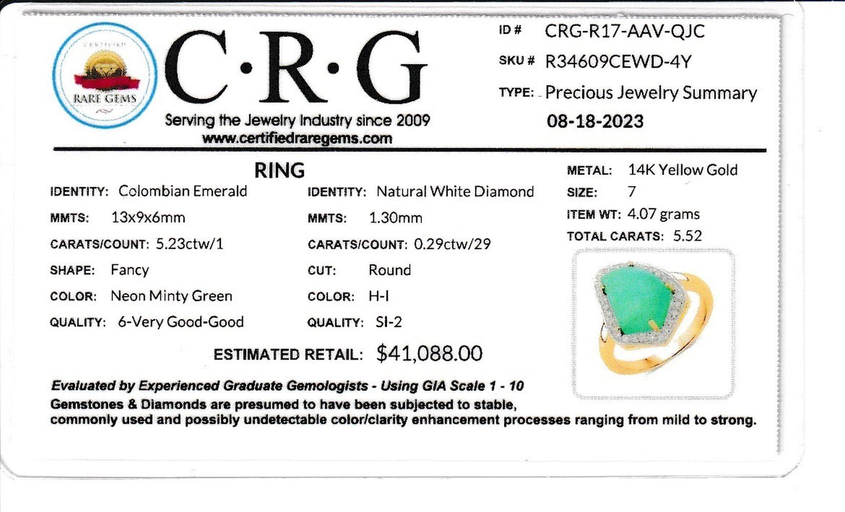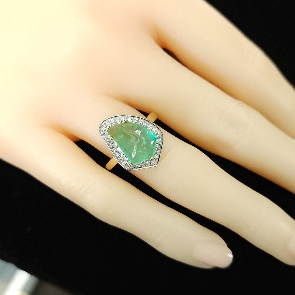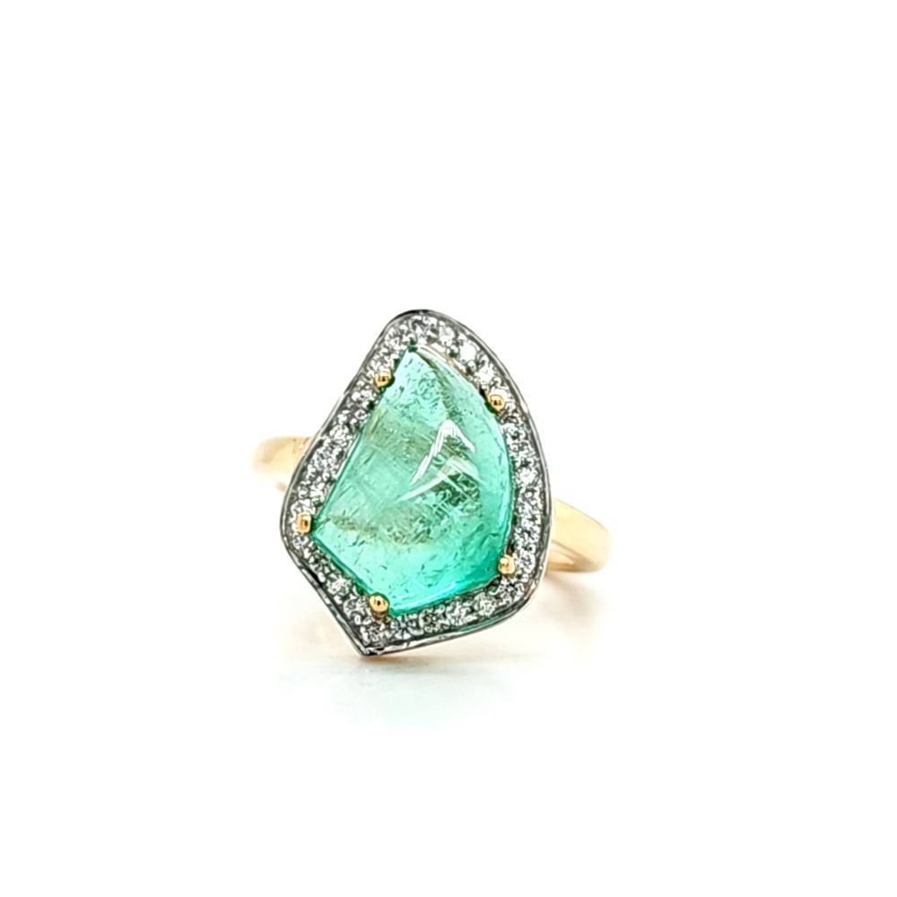 TITLE DESCRIPTION: Raw Polished Mint Green Colombian Emerald and Diamond Ring