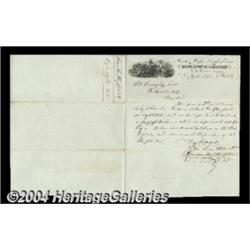 Rawdon, Wright, Hatch & Edson 1852 and 1853 Letters. Both letters deal with bank note company issues, discussing notes in production. Each bears the elaborate sea creature vignette associated with this company. 2 items <BR><BR><B>Important notice:</B> Heritage usually auctions material at the rate of 200-250 lots per hour. On some occasions eBay Live bid software or the Internet may not be able to keep up with the pace of the auction. We recommend placing a realistic absentee bid now as insurance to avoid disappointment. Occasionally the auctioneer may eliminate or reject an eBay Live bid, and the auctioneer may also reopen a lot after the close of the eBay live bidding (usually because we missed an audience bid), and may reject your bid even if it shows you as the winning bidder. By bidding via eBay Live, you agree that Heritage may award the lot to another bidder at its sole discretion under the circumstances described above or any other reasonable circumstances. Since eBay bids are not shown to us until we open the lot on the floor, we treat those bids just like floor bids. In most cases the floor responds before the eBay bid is presented to us, due to Internet lag time, so for consistency we have made it a policy that floor bids are always considered first over tie eBay live bids. Also please note that all Heritage lots purchased through eBay Live carry a 20% Buyer's Premium. Please make sure you read the Terms and Conditions before you bid. <BR><BR><B>IMPORTANT ANNOUNCEMENT ABOUT RESERVES:</B> Heritage now divulges all reserves on its web site 7 days before every auction. If you want to know whether the reserve on this lot has been met, and if not, what the reserve amount is, please visit this lot page on the HeritageCoin.com web site, or email: bid@HeritageGalleries.com