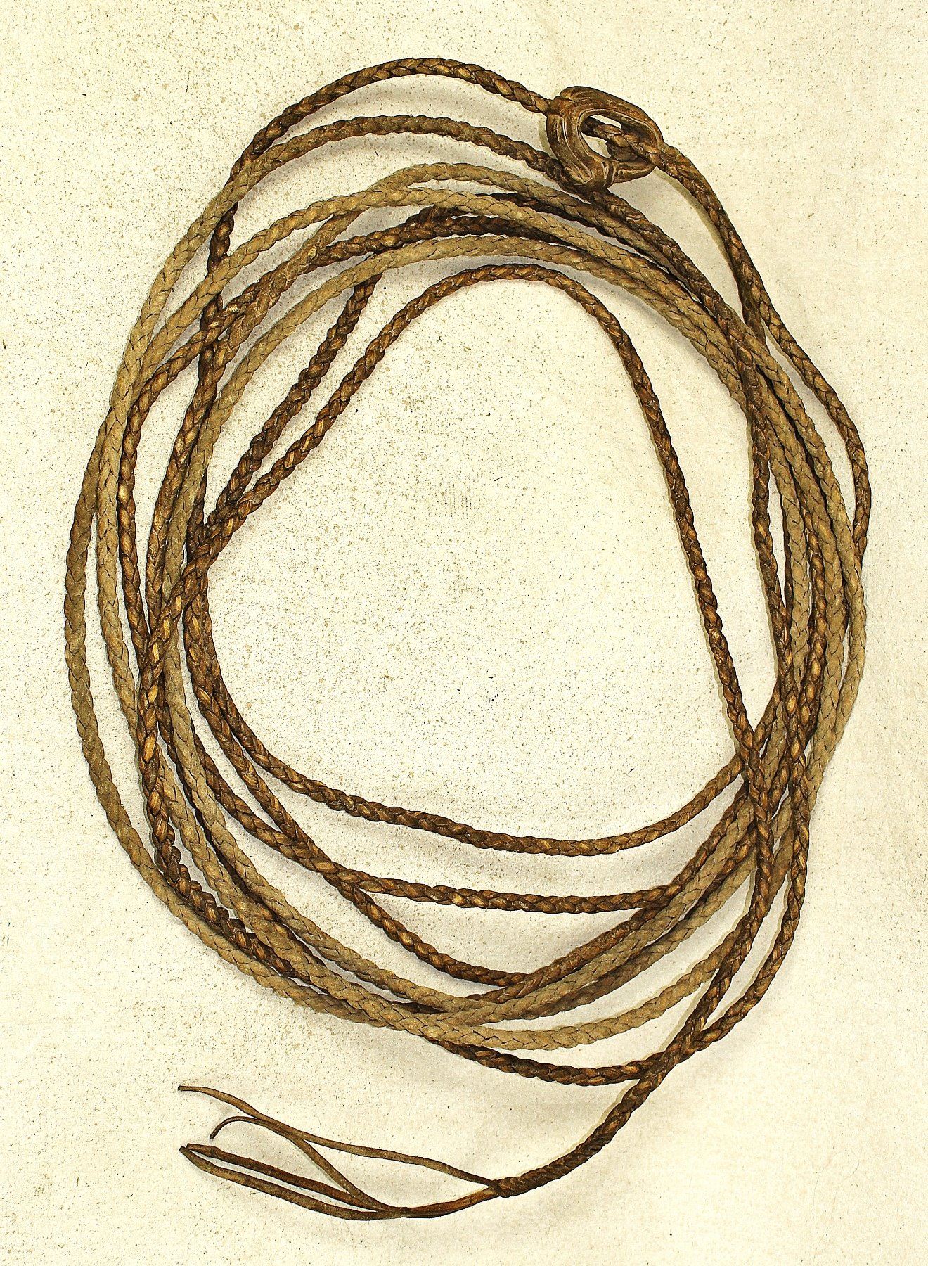 A great early 4-plait rawhide riata with a fantastic hondo and tails, showing wonderful patina, and measuring approximately 40'.