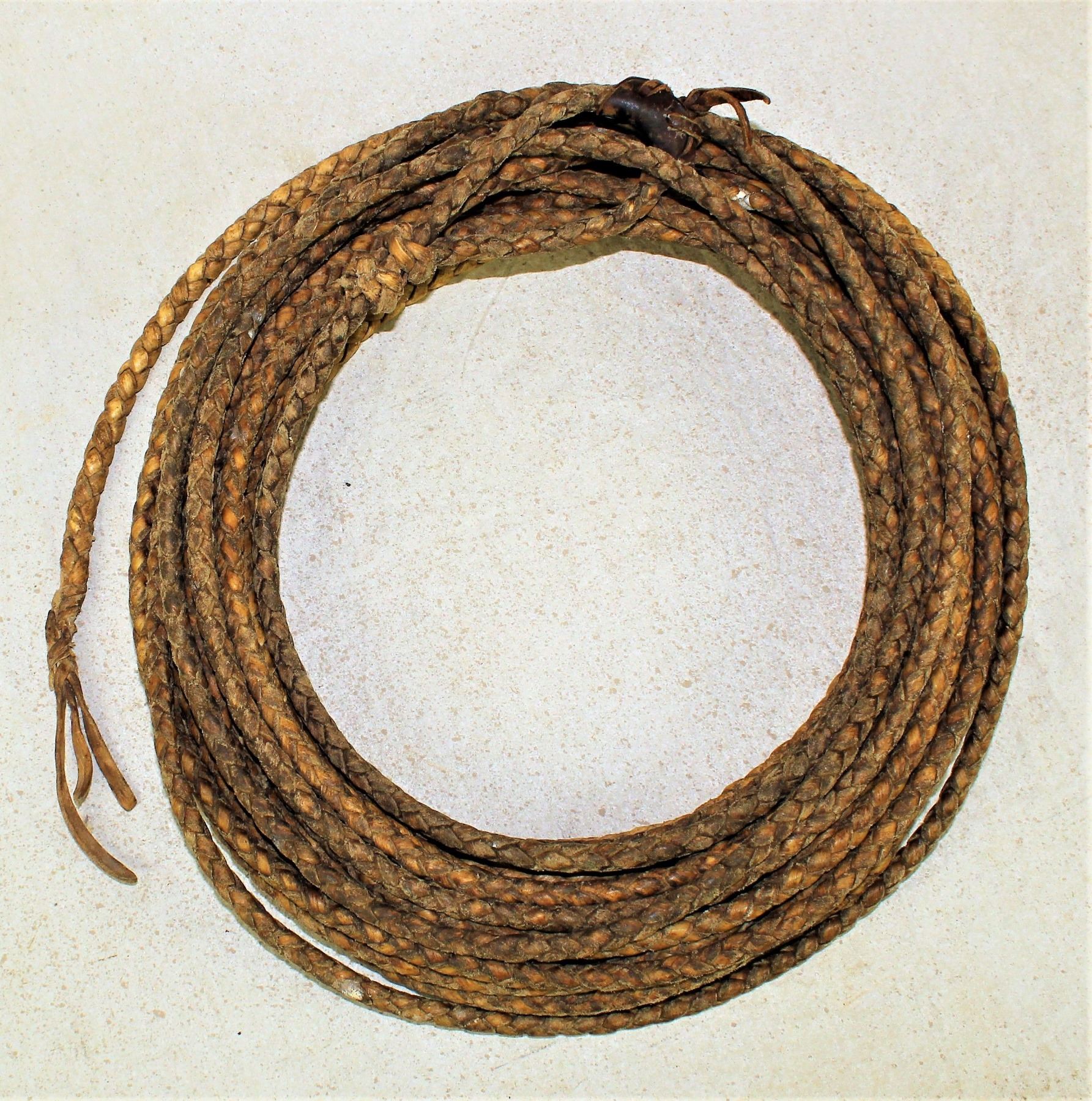 Splendid 4 plait rawhide rope with great color and patina measuring approximately 40 feet long.