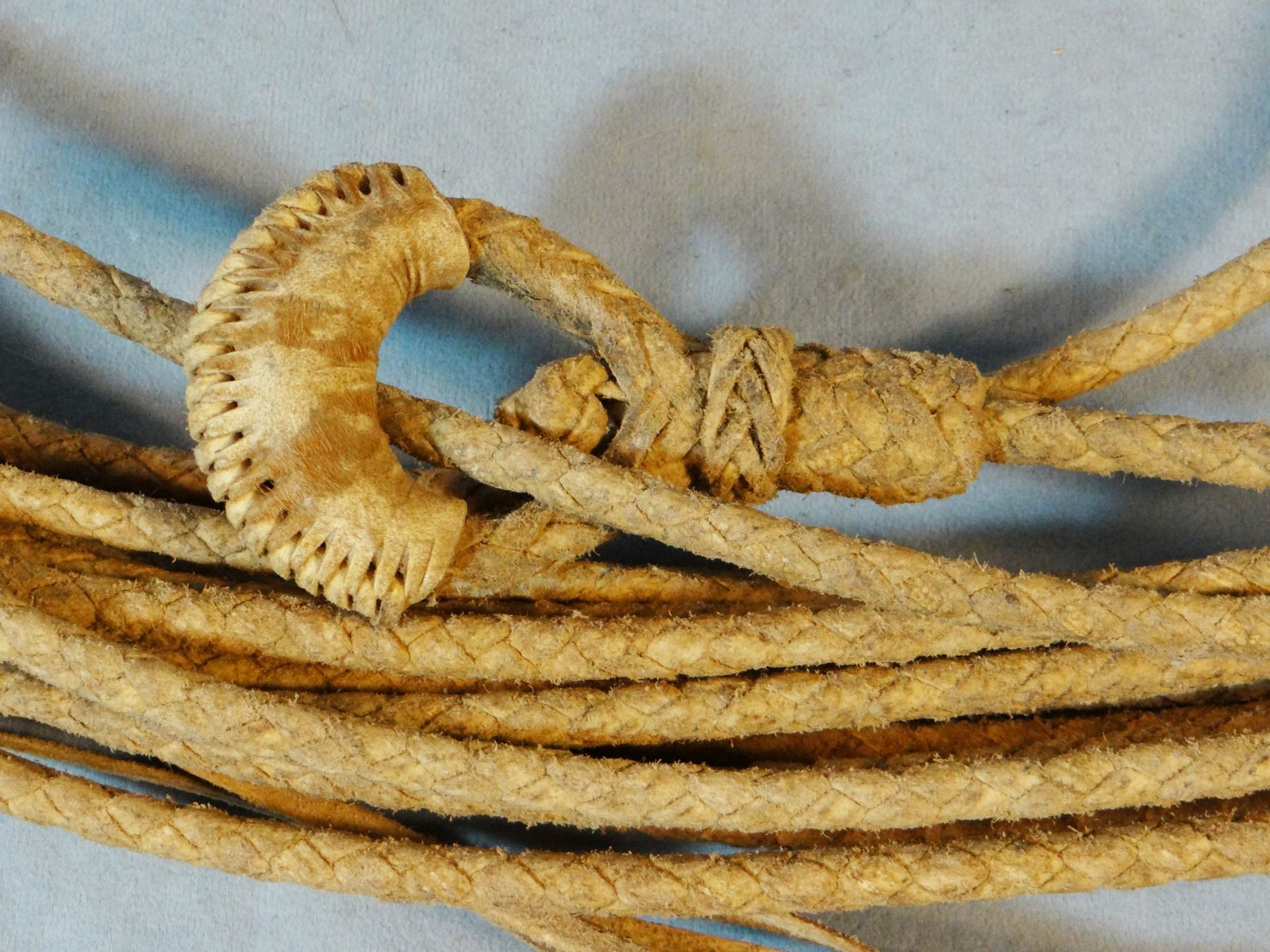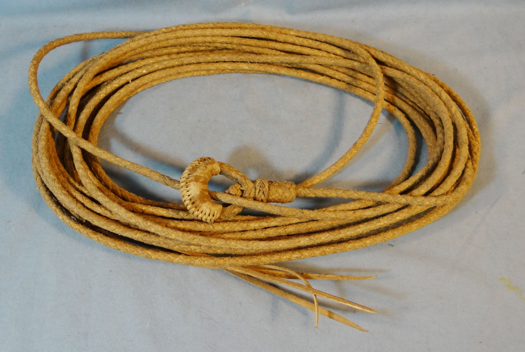Rawhide riata, 48', shows that it has been used, hondo leather covered and intact