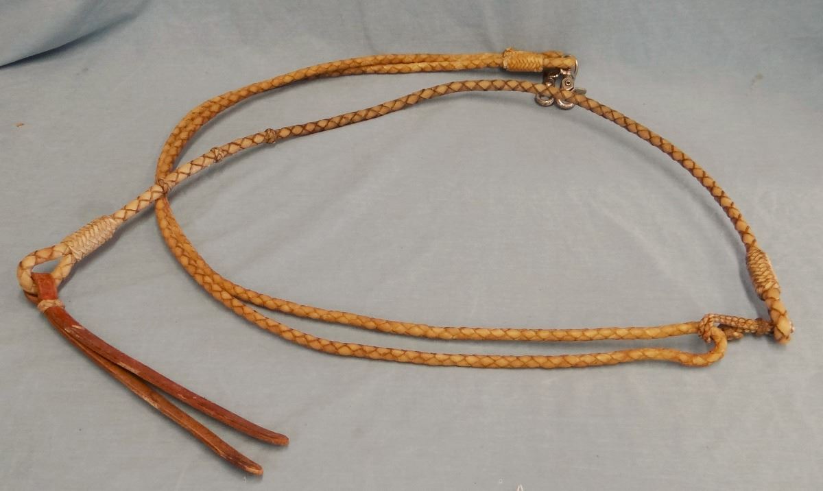 Rawhide roping reins with romal, four strand braid
