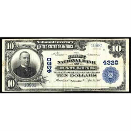 Rawlins, WY $10 1902 Plain Back FNB Charter #4320
