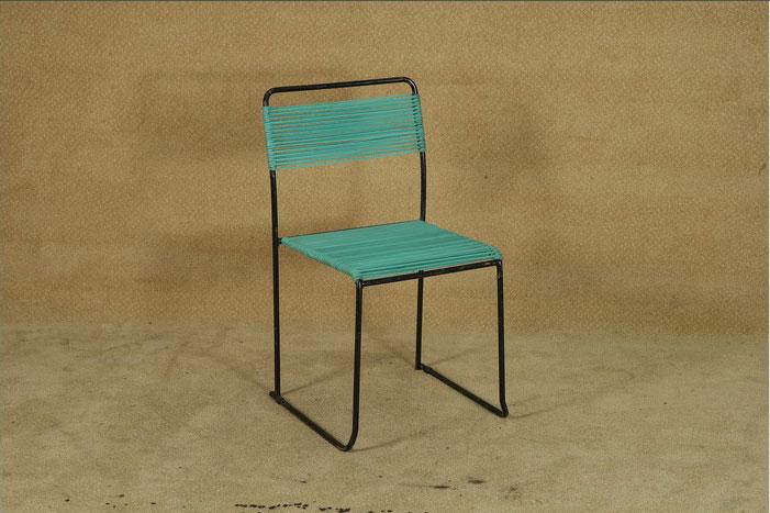 Black Iron Patio Chair with Green Band Wrapping Used as a Movie Prop in the 2004 film "Ray" starring Jamie Foxx. #2091907 Dimensions: 31"x16"x17"