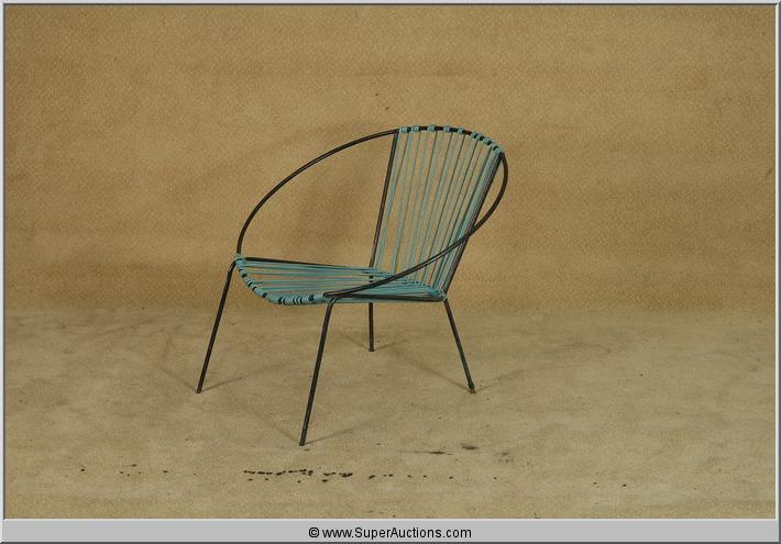 Black Iron Patio Arm Chair with Green Band Wrapping Used as a Movie Prop in the 2004 film "Ray" starring Jamie Foxx. #2000313 Dimensions: 25"x29"x23.5"