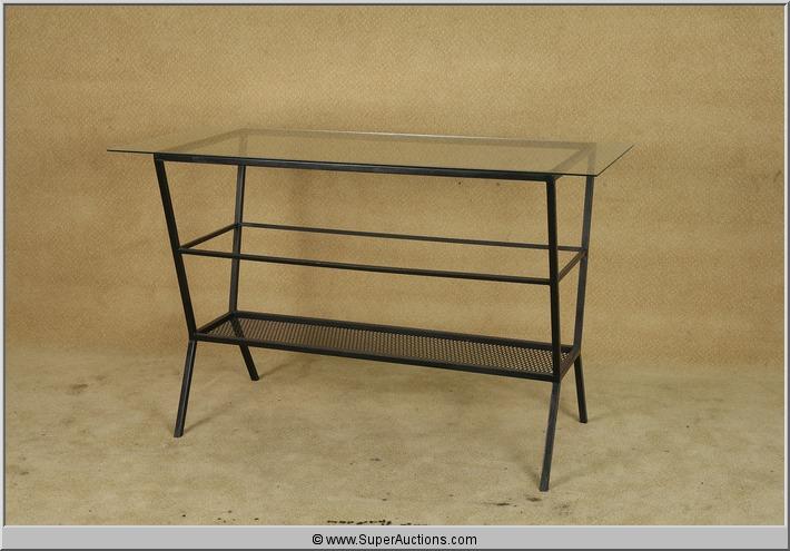 Black Wire Frame Console Table with Glass Top Used as a Movie Prop in the 2004 film "Ray" starring Jamie Foxx. #2090741 Dimensions: 30.25"x54.5"x21"