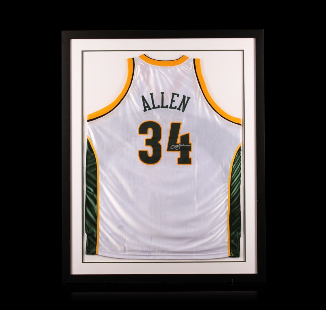 Ray Allen Framed Autographed Jersey. Comes with Certificate of Authenticity.