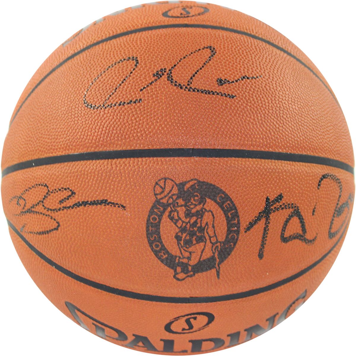 Ray Allen/Paul Pierce/Kevin Garnett Triple Signed Celtics Logo Basketball (Signed In Black)