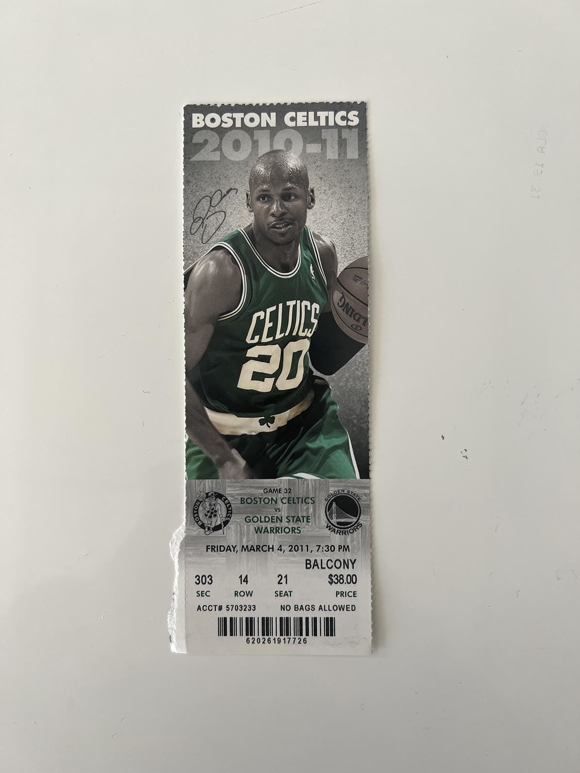 Ray Allen facsimile signed Celtics ticket. Mar. 11, 2011. 2x6 inches