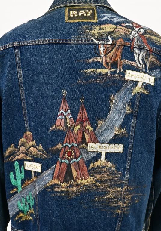 Painted and decorated by Ray's mother-in-law. Size XLT made by Sierra Ridge. Worn in 1992 for Asleep at the Wheel's Austin City Limits taping featuring the Texas Playboys. From Ray Benson's personal collection.