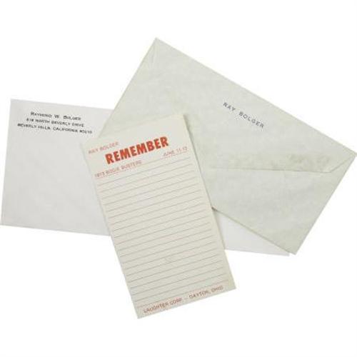 <B>Ray Bolger Signed Photo and Personal Stationery.</B></I> A b&w 8" x 10" photo of the <I>Wizard of Oz</B></I> actor, inscribed and signed by him in black ink, and accompanied by three unused pieces of his personal and business stationery. Items are in overall Very Fine condition. <I>Accompanied by a COA from PSA/DNA.</B></I><BR><BR><b>Shipping:</b> Flat Material, Small (<a target="_blank" href="http://www.heritageauctions.com/common/shipping.php">view shipping information</a>)
