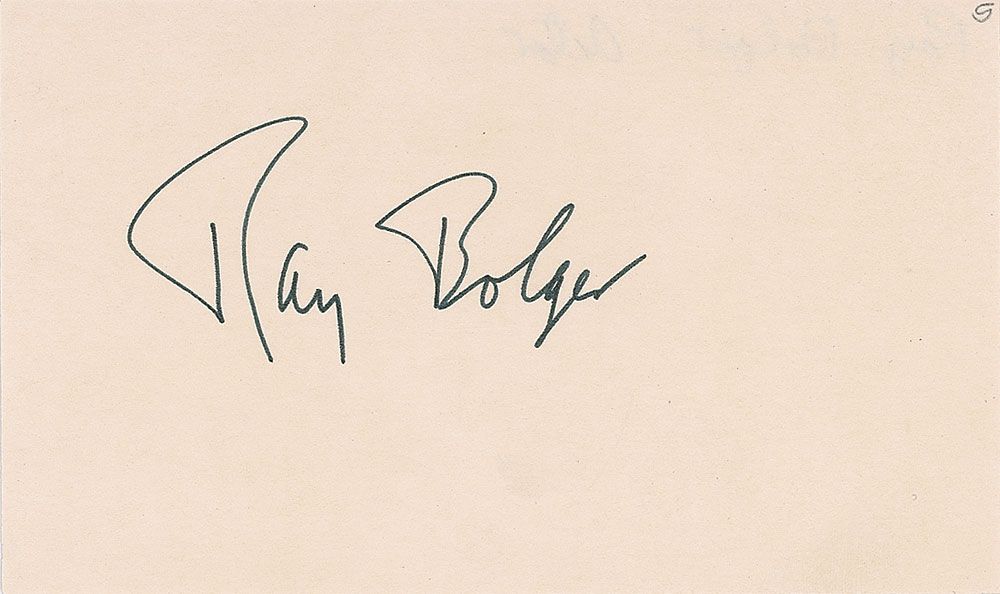 Felt tip signature, “Ray Bolger,” on an off-white 5 x 3 card. In fine condition.