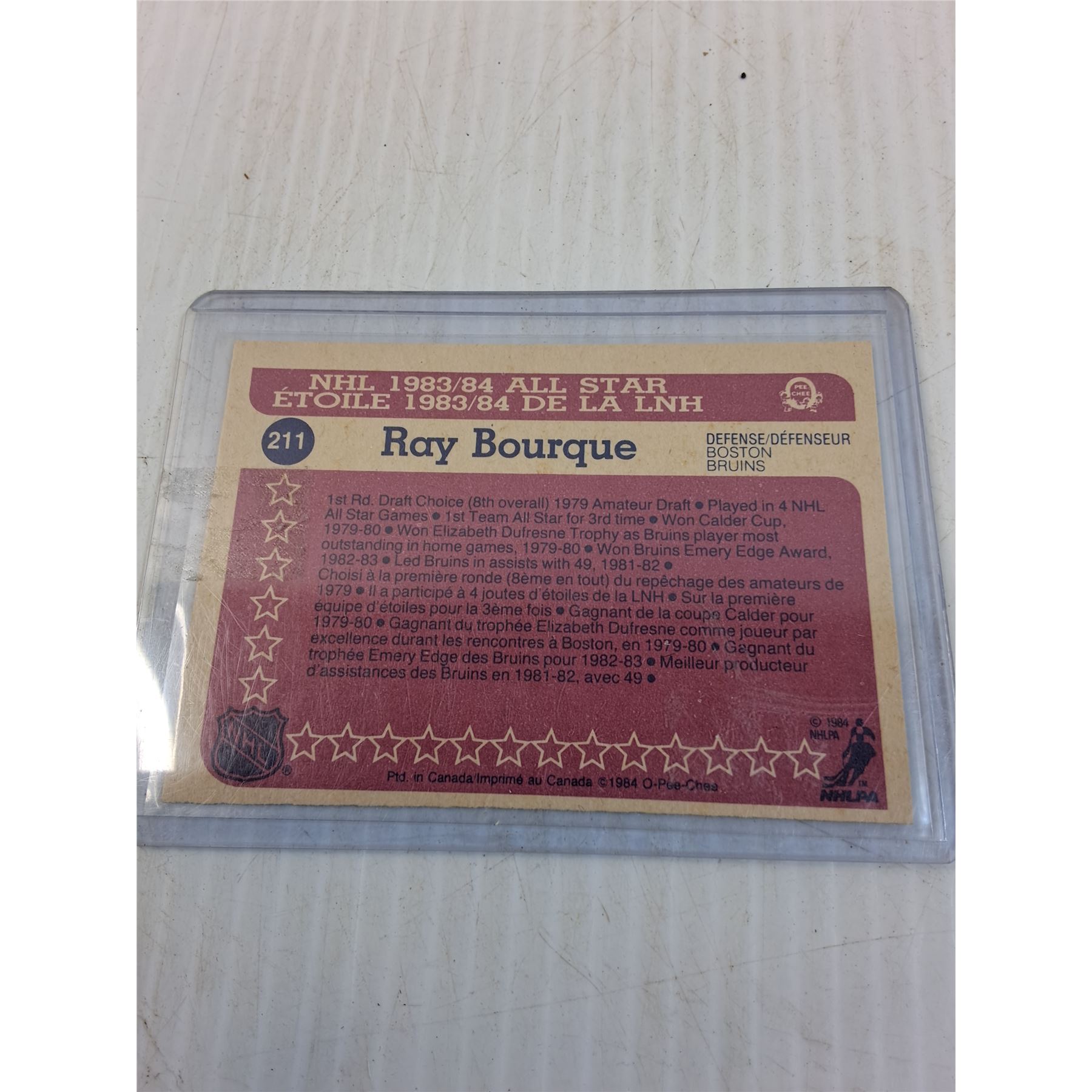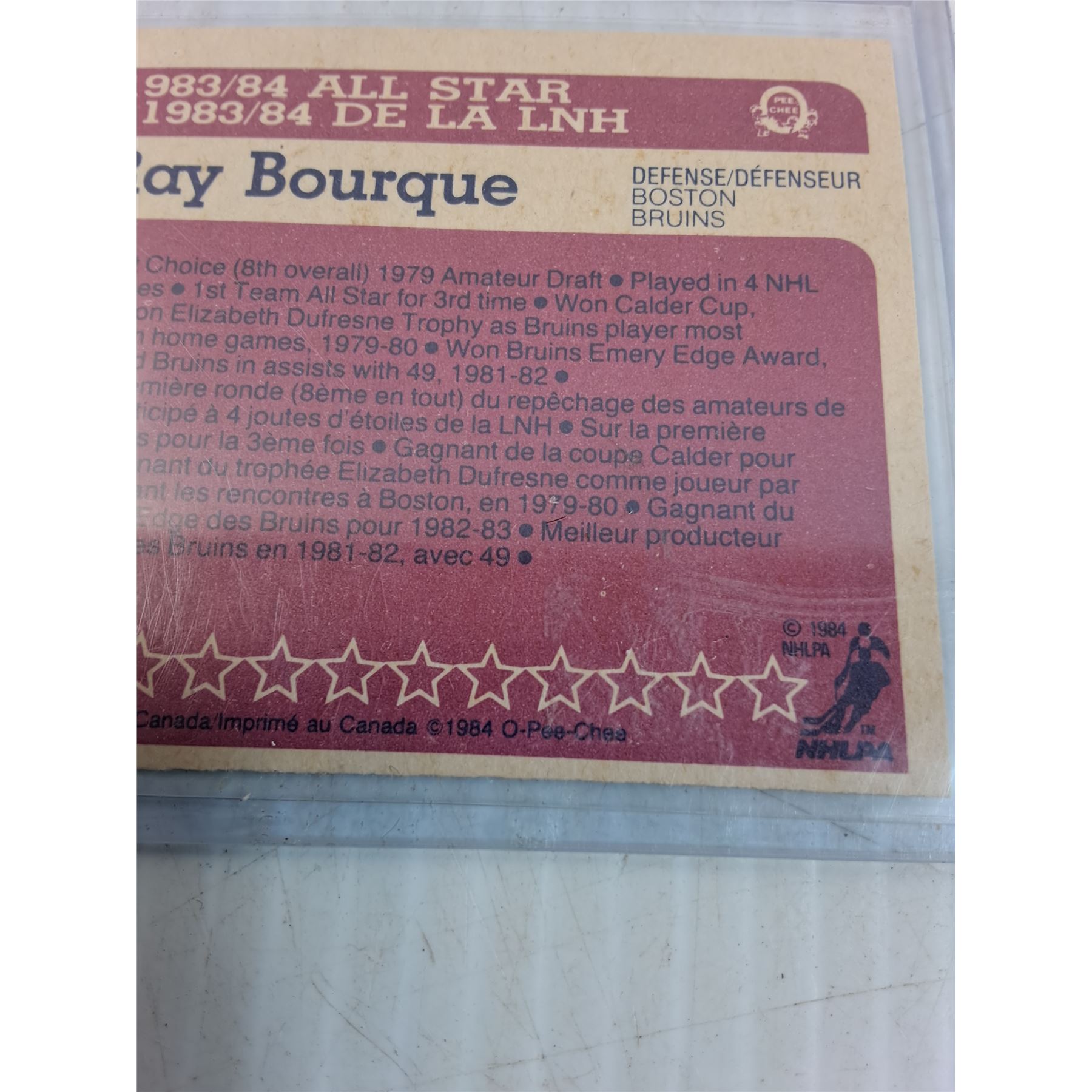 Ray Bourque All Star Hockey Trading Card - 1984 - CANNOT GUARANTEE AUTHENTICATION