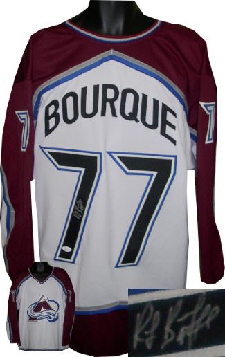 Ray Bourque currently holds records for most career goals, assists, and points by a defenceman in the National Hockey League. Although Bourque played just one full season with the Avalanche, he proved to be a force both on the ice and in the locker room. In 2000, he helped the struggling Avalanche improve their form and capture their division. During the playoffs, they advanced to the conference finals, where they lost to the Dallas Stars in a hard-fought series, with Bourque hitting the post in the last minutes of Game Seven which would have tied the game after his team rallied from a 3–0 deficit in the third period to 3–2. Ray Bourque has hand signed this Colorado Avalanche White Prostyle Jersey. JSA Hologram and Certificate of Authenticity.