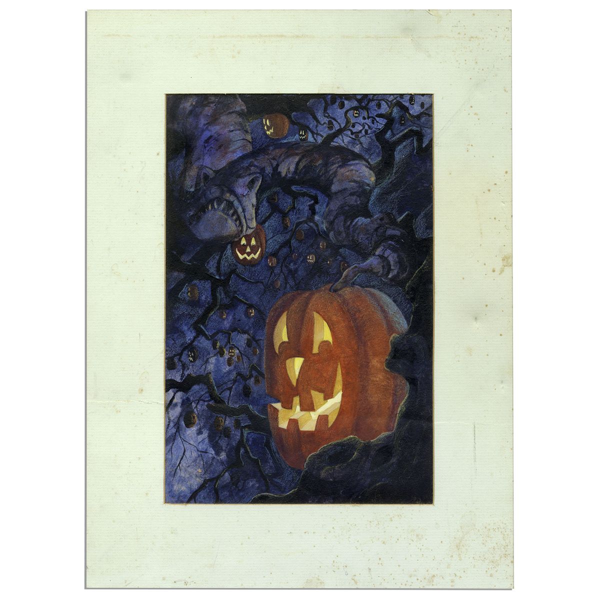 Ray Bradbury Owned Art Inspired by His Story ''The Halloween Tree'' -- Mixed Media Art is Matted to an Overall Size of 12'' x 16'' -- Foxing to Mat, Else Near Fine -- With COA From Estate