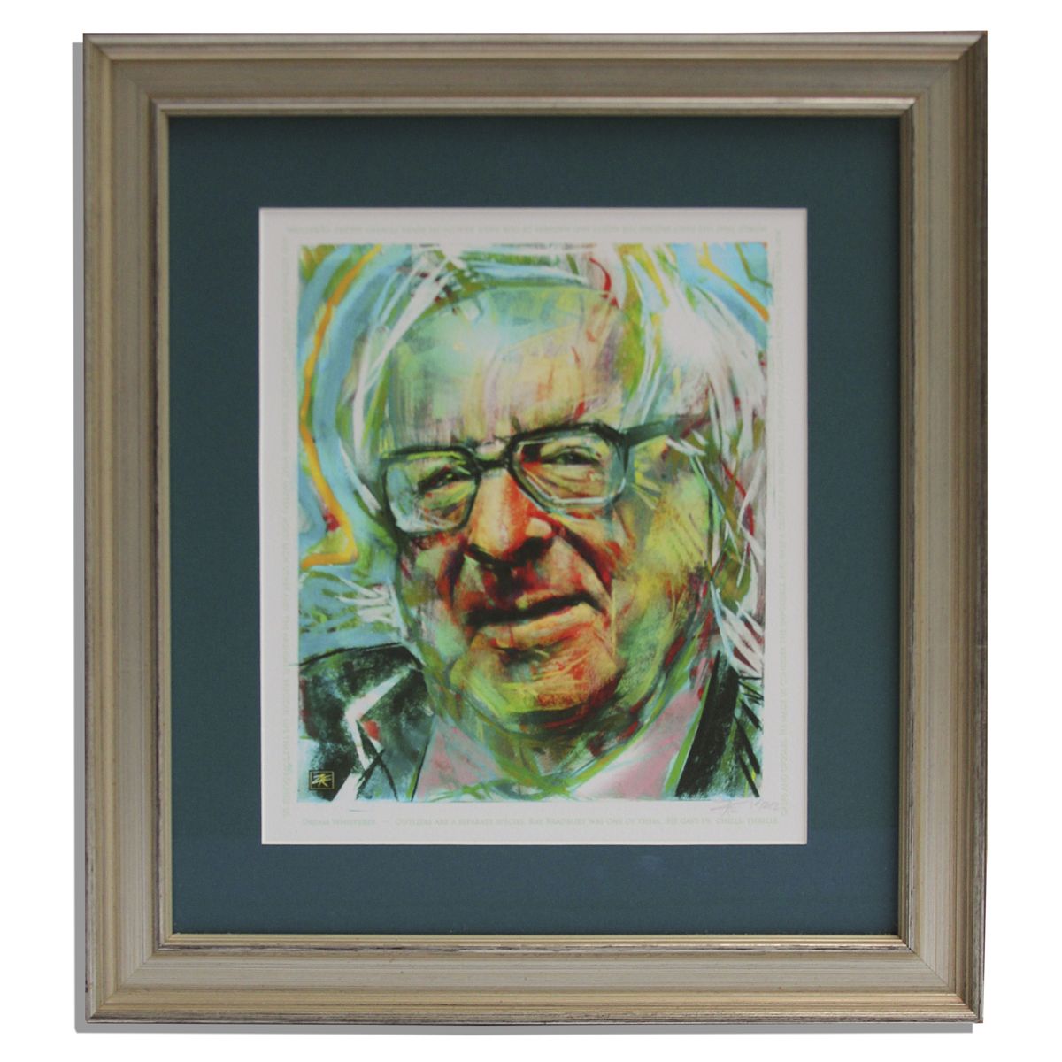 Ray Bradbury Owned Painted Illustration of Himself, Signed by the Artist -- With Written Tribute to Bradbury Around Border -- 12.5'' x 13.75'' -- Very Good -- With COA From Estate