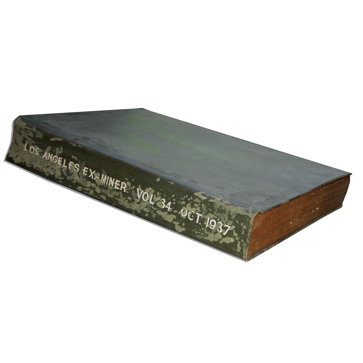 Ray Bradbury personally owned bound book of ''Los Angeles Examiner'' newspapers from 1937. Bound in green cloth boards with ''Los Angeles Examiner / Vol. 34 / Oct. 1937'' printed to spine. Measures 17.5'' x 21.5''. Some wear from age, else very good. With a COA from the Ray Bradbury estate.