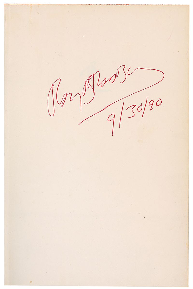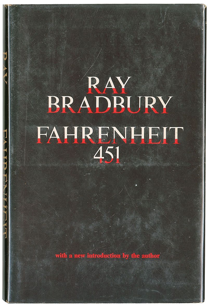 Signed book: Fahrenheit 451. Later printing. NY: Simon & Schuster, 1967. Hardcover with dustjacket, 5.75 x 8.5, 191 pages. Signed in red ink on the first free end page, “Ray Bradbury 9/30/90.” In fine condition, with some mild toning to pastedowns and scattered wear and toning to dustjacket.