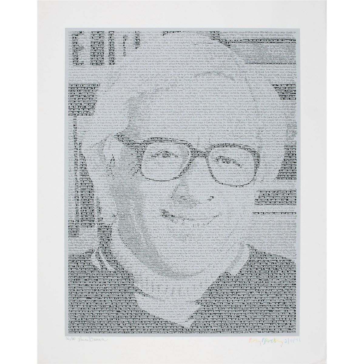 Limited edition 20.25 x 25.5 print featuring a portrait of Bradbury imposed over the text of his story ‘Homecoming,’ numbered 36/100, signed in the lower right in multicolored pencil, “Ray Bradbury, 2/11/91.” Also signed in pencil in the lower left by the artist, Lance Brown. In fine condition, with some creasing to corner tips.