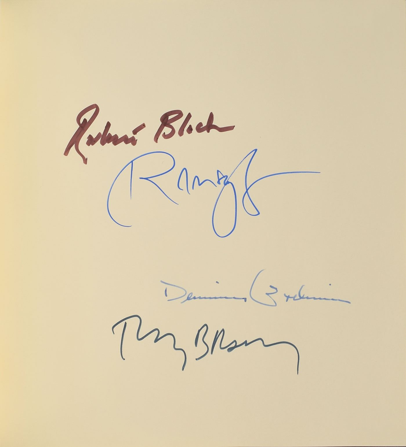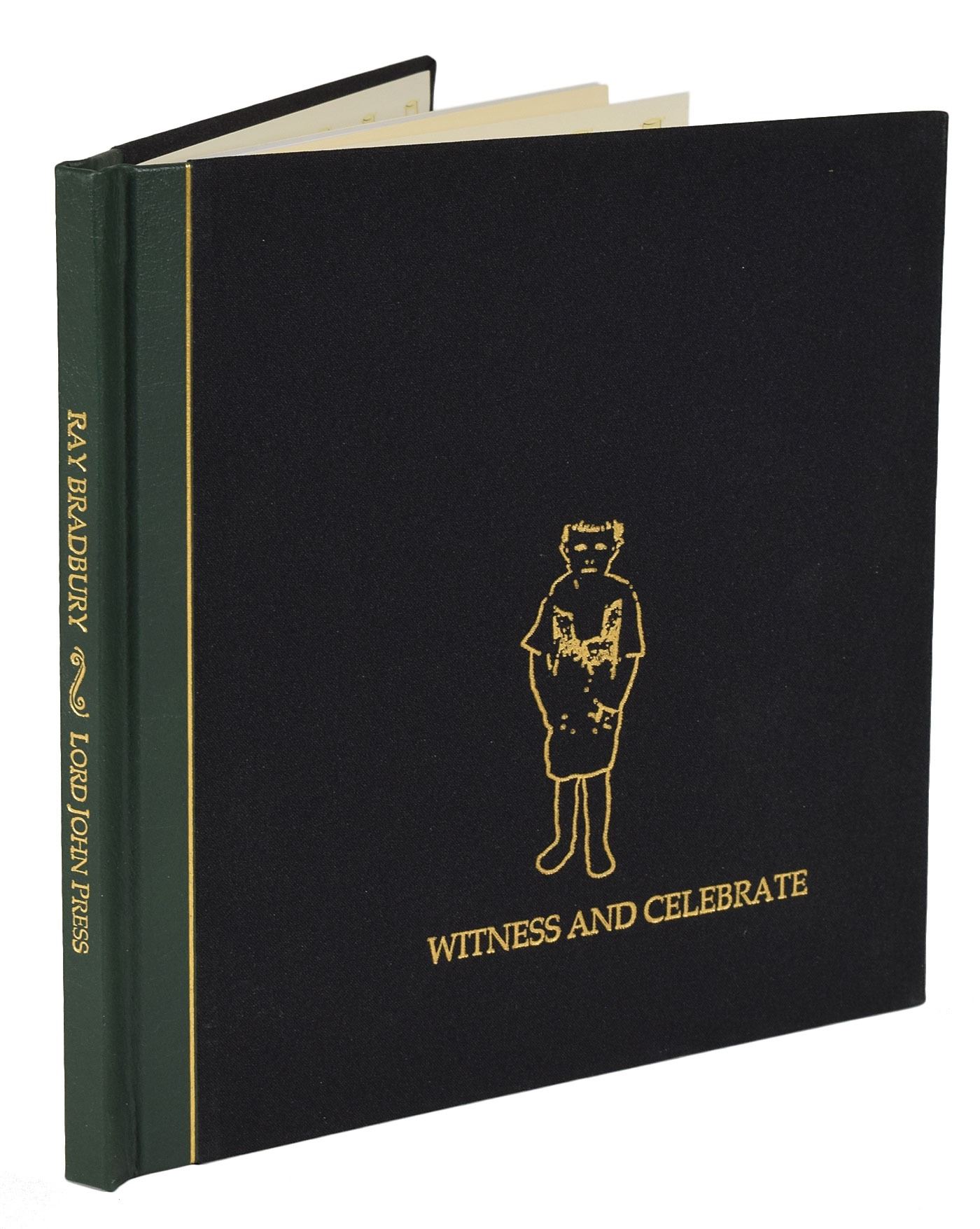 Signed book: Witness and Celebrate. First edition, limited issue, numbered 34/100. Northridge, CA: Lord John Press, 2000. Clothbound hardcover, 8.25 x 8, 47 pages. Signed on a free end page in black felt tip by Bradbury. Also signed in felt tip by authors Robert Bloch, Ramsey Campbell, and Dennis Etchison. In very fine condition.