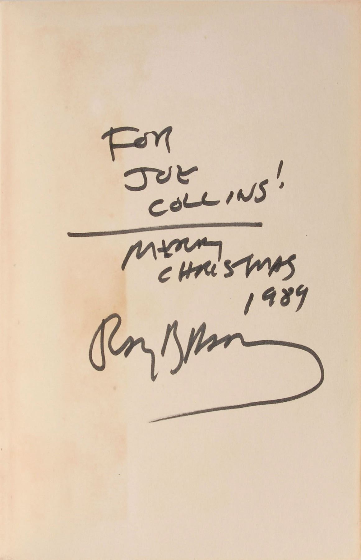 Signed book: The Illustrated Man. First edition. NY: Doubleday, 1951. Hardcover with dust jacket, 5.5 x 8.25, 251 pages. Signed and inscribed on the first free end page in black felt tip, "For Joe Collins! Merry Christmas, 1989, Ray Bradbury." In very good to fine condition, with a light strip of toning to the signed page; some light staining and wear to dust jacket.