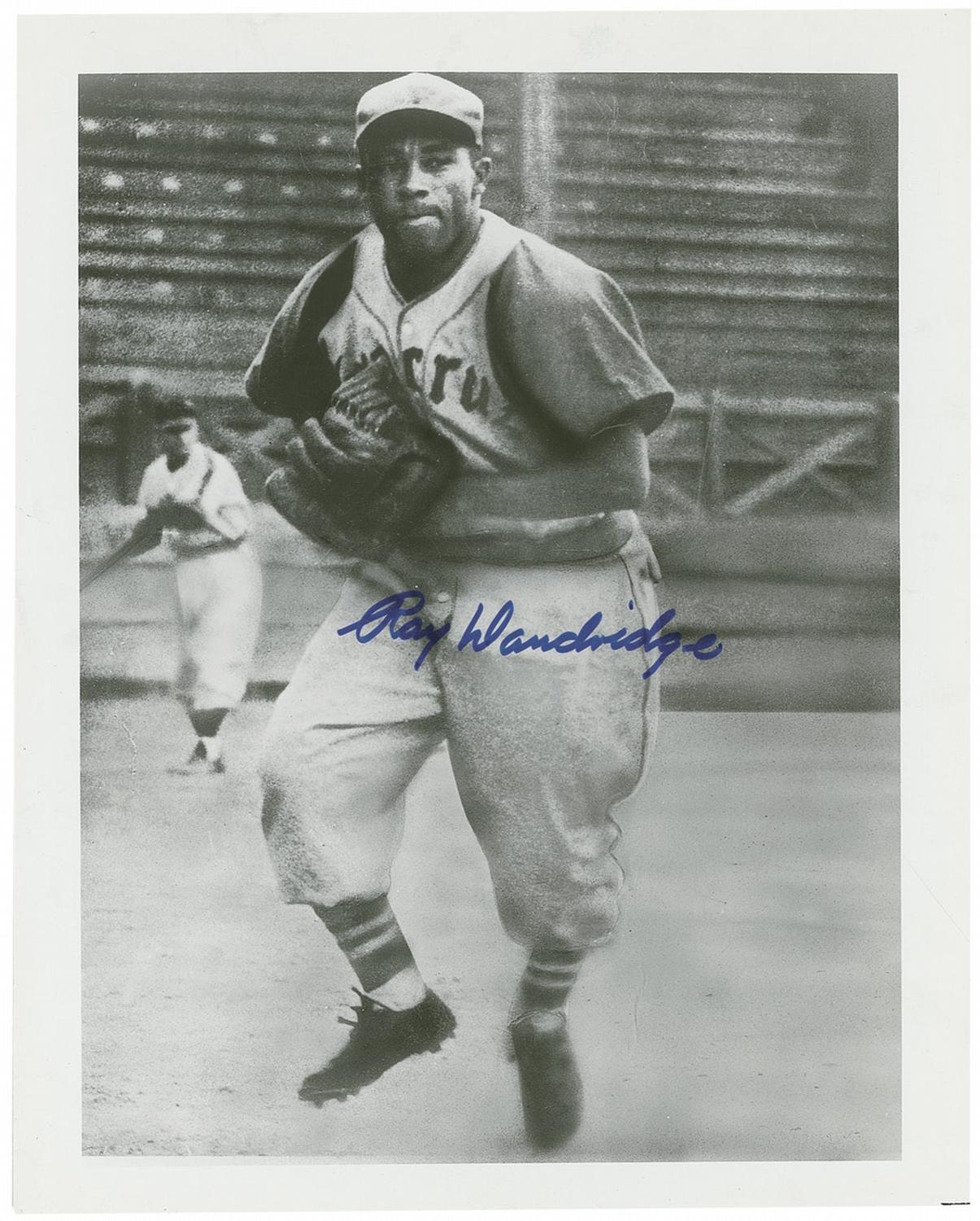 Glossy 8 x 10 photo of Dandridge on the field, signed in blue felt tip “Ray Dandridge.” In fine condition with a few creases.
