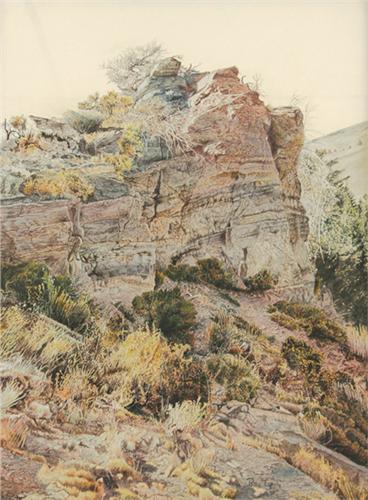 Ray Eyerly (20th century). Rimrock. 23" x 18" watercolor. Signed lower right (est $1,000-2,000)