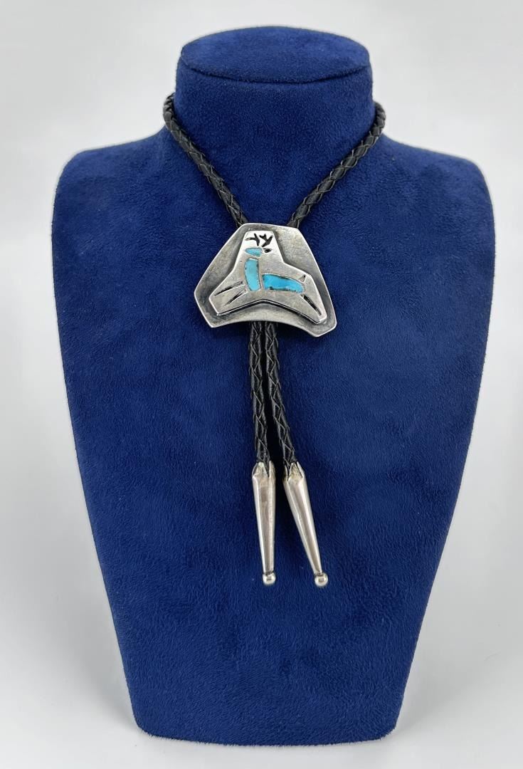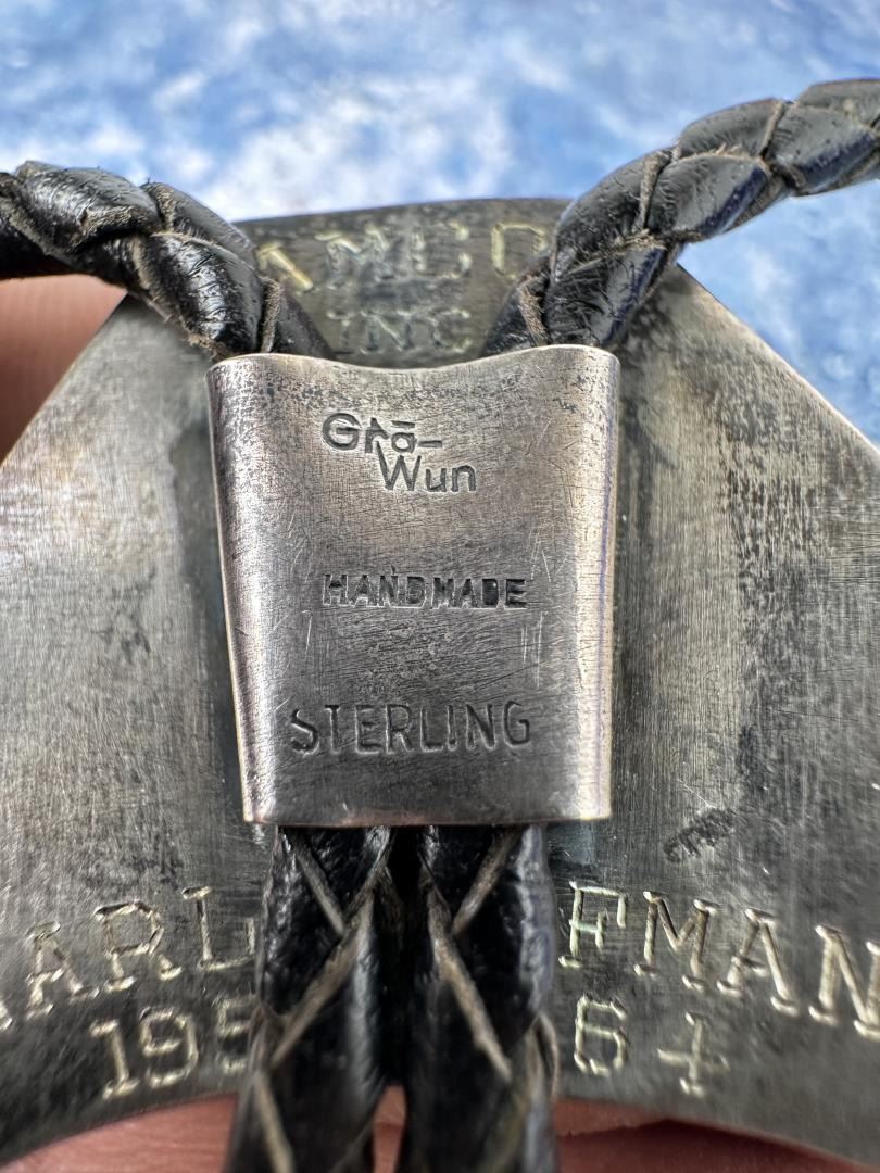 Measures 17 3/4" long. According to Christie Romero's Warman's Jewelry, Graves opened up shop in Scottsdale Arizona in 1959. The name Graves used on his jewelry, "Gra-Wun", is a combination of his last name and that of an early business partner. Graves was a studio artist of great renown, his shop closed in 2001 Norman Sandfield Collection Inv: B1156