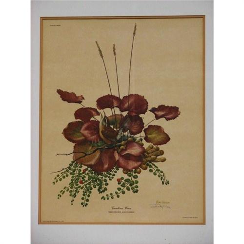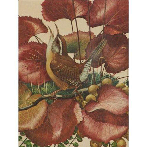 Ray Harm CAROLINA WREN ca. 1970, Bookplate XXXIII. Signed lower center. 15 1/2 x 19 1/2, double matted and framed 22 1/4 x 22 1/4. Condition: no damage noted. Some spots on mat.