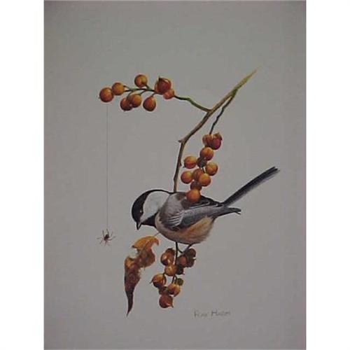 Lovely. Perfectly preserved. Chickadee and bittersweet on ecru background. Very nice condition.