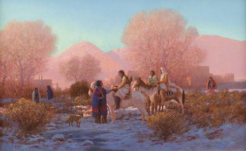 Ray Knaub (b. 1940). "Gathering For The Rabbit Hunt". 24" x 36". Oil on Canvas. (est $8,000-10,000).