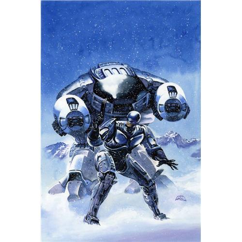 <B>Ray Lago - RoboCop: Mortal Coils #4 Cover Original Art (Dark Horse, 1993).</B></I> It's a cold, cruel world out there -- and RoboCop has just stumbled into a cyborg-chilling trap. Will the "thin blue line" hold? Ray Lago catches all the science fiction thrills of the wildly popular film series. This painting has an image area of 10" x 15", and the art is in Excellent condition.<BR><BR><b>Shipping:</b> Flat Material, Large (<a target="_blank" href="http://www.heritageauctions.com/common/shipping.php">view shipping information</a>)