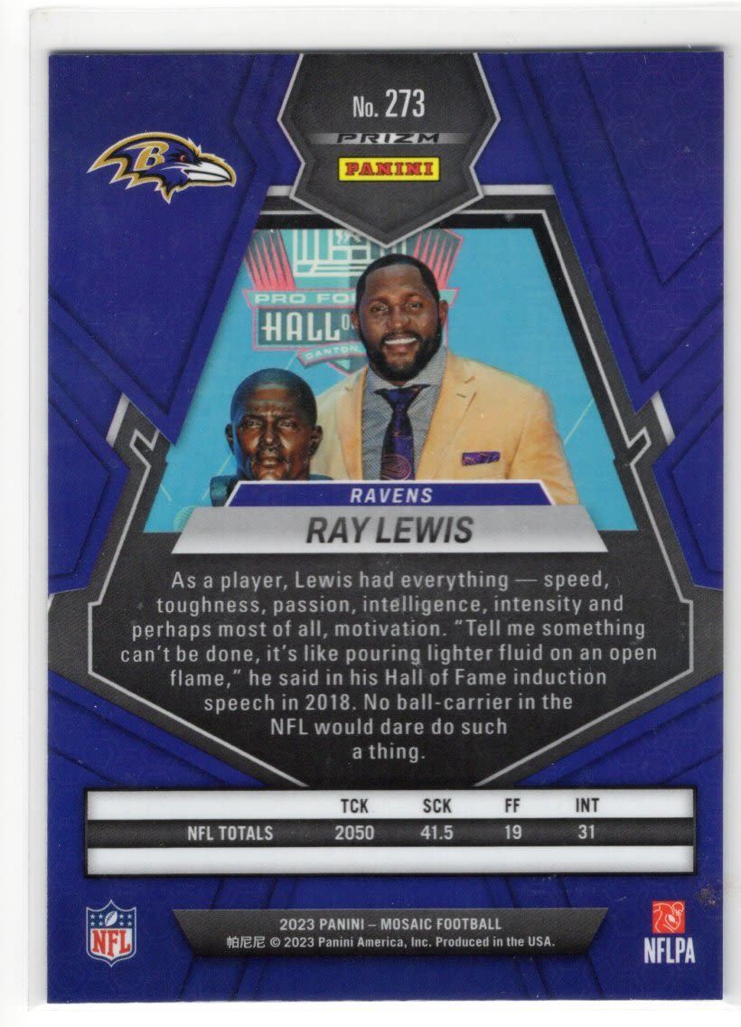 Ray Lewis 2023 Panini Mosaic Reactive Blue Mosaic Card # 273