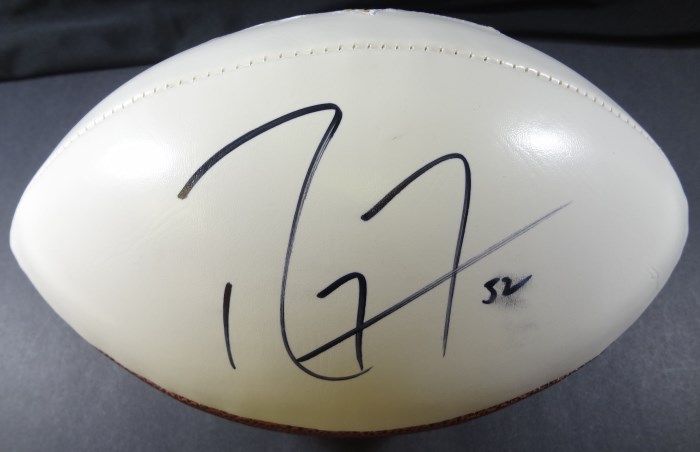 RAVENS "ESTABLISHED DATE: 1996 AFC Champions 2000, 2012 Super Bowl Champions XXXV, XLVII" Football signed by Ray Lewis with black sharpie. No COA. Est. Value $175.00 - $200.00.