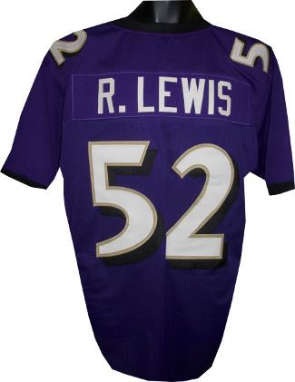Ray Lewis has played for the Baltimore Ravens of the NFL since 1996. Lewis has been selected to ten Pro Bowls and been named an Associated Press All-Pro eight times. He won the NFL Defensive Player of the Year in 2000 and 2003; he was the sixth player to win the award multiple times. He was also the second linebacker to win the Super Bowl Most Valuable Player Award and the first linebacker to win the award on the winning Super Bowl team. This is a Ray Lewis Baltimore Ravens unsigned Purple unlicensed custom-prostyle jersey with twill stitched nameplate and numbers. perfect for autograph or to wear! Size XL