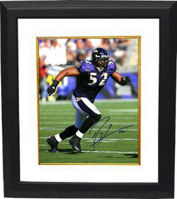 Ray Lewis has played for the Baltimore Ravens of the NFL since 1996. Lewis has been selected to ten Pro Bowls and been named an Associated Press All-Pro eight times. He won the NFL Defensive Player of the Year in 2000 and 2003; he was the sixth player to win the award multiple times. He was also the second linebacker to win the Super Bowl Most Valuable Player Award and the first linebacker to win the award on the winning Super Bowl team. Ray has signed this Baltimore Ravens 16x20 Photo. Certificate of Authenticity from Athlon Sports. Custom White Mat and Premium Black Color Framed as shown.