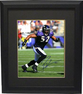 Ray Lewis has played for the Baltimore Ravens of the NFL since 1996. Lewis has been selected to ten Pro Bowls and been named an Associated Press All-Pro eight times. He won the NFL Defensive Player of the Year in 2000 and 2003; he was the sixth player to win the award multiple times. He was also the second linebacker to win the Super Bowl Most Valuable Player Award and the first linebacker to win the award on the winning Super Bowl team. Ray has signed this Baltimore Ravens 16x20 Photo. Certificate of Authenticity from Athlon Sports. Custom Black Mat and Premium Black Color Framed as shown.