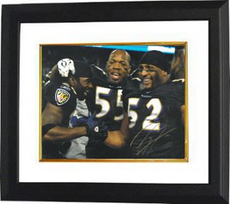 Ray Lewis has played for the Baltimore Ravens of the NFL since 1996. Lewis has been selected to ten Pro Bowls and been named an Associated Press All-Pro eight times. He won the NFL Defensive Player of the Year in 2000 and 2003; he was the sixth player to win the award multiple times. He was also the second linebacker to win the Super Bowl Most Valuable Player Award and the first linebacker to win the award on the winning Super Bowl team. Ray has signed this Baltimore Ravens 16x20 Photo. Certificate of Authenticity from Athlon Sports. Custom White Mat and Premium Black Color Framed as shown.