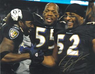 Ray Lewis has played for the Baltimore Ravens of the NFL since 1996. Lewis has been selected to ten Pro Bowls and been named an Associated Press All-Pro eight times. He won the NFL Defensive Player of the Year in 2000 and 2003; he was the sixth player to win the award multiple times. He was also the second linebacker to win the Super Bowl Most Valuable Player Award and the first linebacker to win the award on the winning Super Bowl team. Ray has signed this Baltimore Ravens 16x20 Photo. Certificate of Authenticity from Athlon Sports.