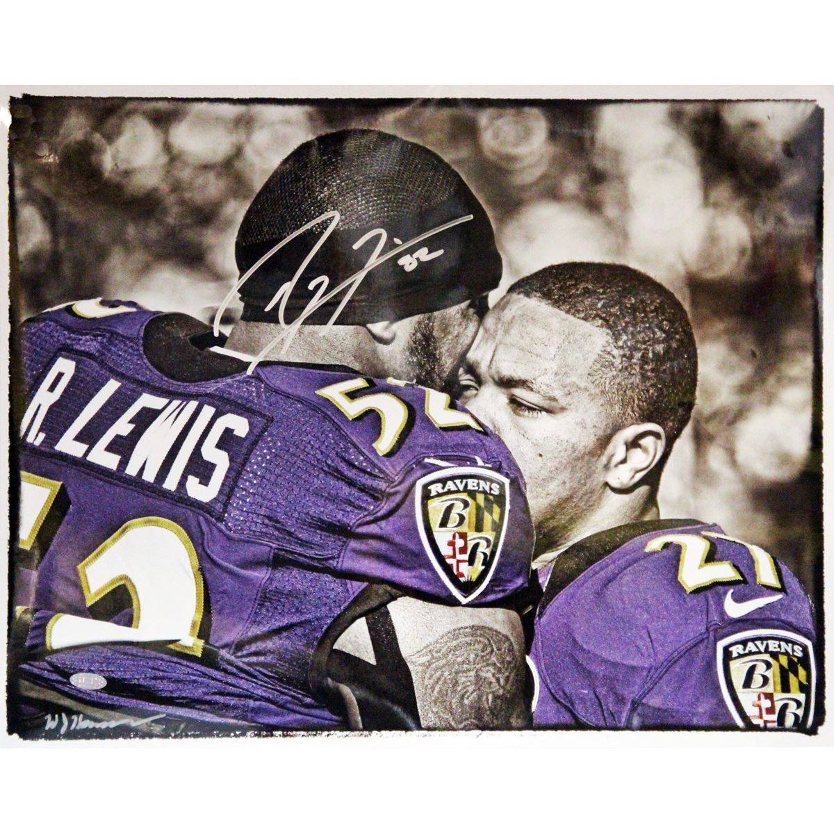 Ray Lewis Signed Hugging Ray Rice B/W with Color Accents Signed 16x20 Hauser Photo (Signed by William Hauser)