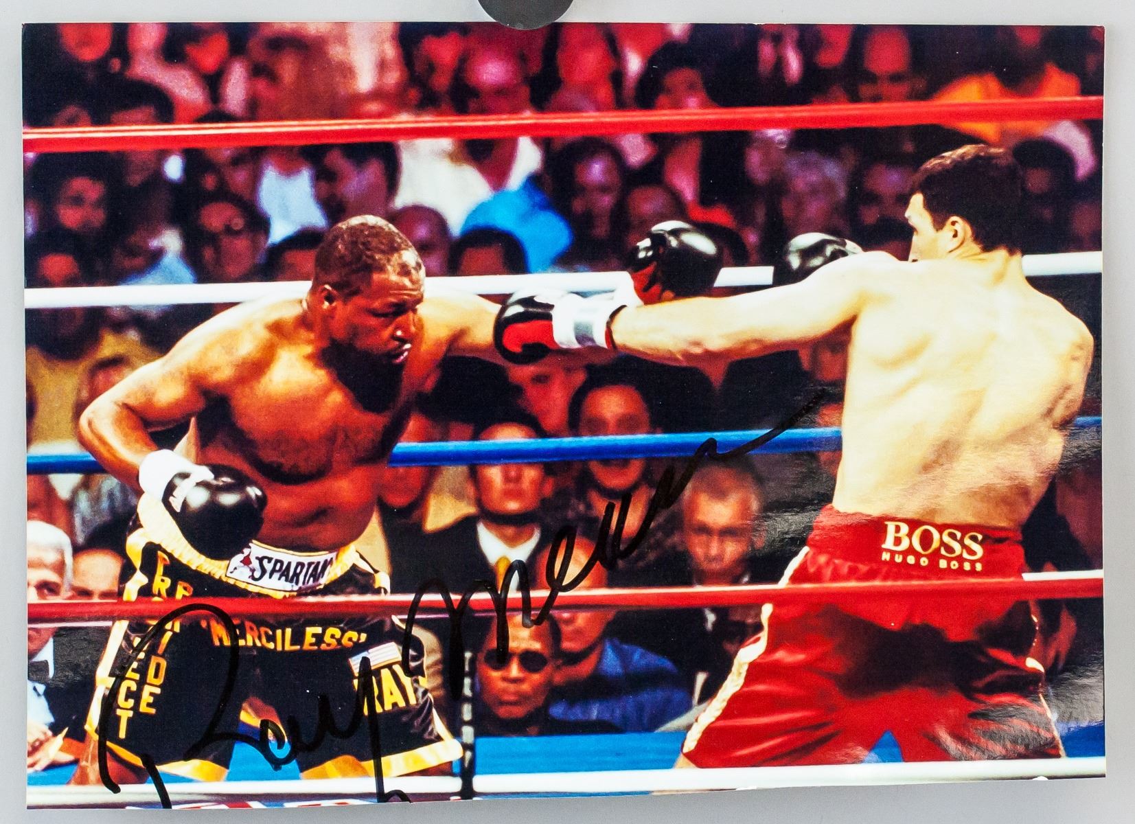 An autographed photograph. Hand signed Ray Mercer (1961- , American). Raymond Anthony "Ray" Mercer is a retired American professional boxer, kickboxer, and mixed martial artist who competed from 1989 to 2009. Accompanied with a certificate of authenticity. 7 x 10 inches