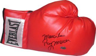 Merciless Ray Mercer is an American professional boxer, former Olympic 1988 Seoul Olympic Gold Medalist and WBO heavyweight title holder. He has also competed in kickboxing and mixed martial arts. Ray Mercer has hand signed this Everlast Red Right Boxing Glove. Leaf Hologram and Certificate of Authenticity from Athlon Sports.