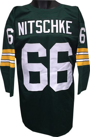 Growing up in the outskirts of Chicago, Ray Nitschke had idolized the Bears and he hoped to be chosen by them in the 1958 NFL draft. However, on December 2, 1957, Nitschke was chosen by the Green Bay Packers as the second pick of the third round of the 1958 NFL Draft in what is considered the greatest drafting year in the history of the franchise. This draft included two other significant Packers of the 1960s, fullback Jim Taylor of LSU (2nd round, 15th overall) and right guard Jerry Kramer of Idaho (4th round 39th overall). Nitschke became a full-time starter in 1962, the anchor of a disciplined defense that helped win five NFL titles and the first two Super Bowls in the 1960s. He was the MVP of the 1962 NFL Championship Game, accepting the prize of a 1963 Chevrolet Corvette.He was elected to the Pro Football Hall of Fame in 1978. This is a Ray Nitschke Green Bay Packers unsigned Green TB unlicensed custom-prostyle jersey with 3/4 Sleeves and with twill stitched nameplate and numbers. perfect to wear! Size XL