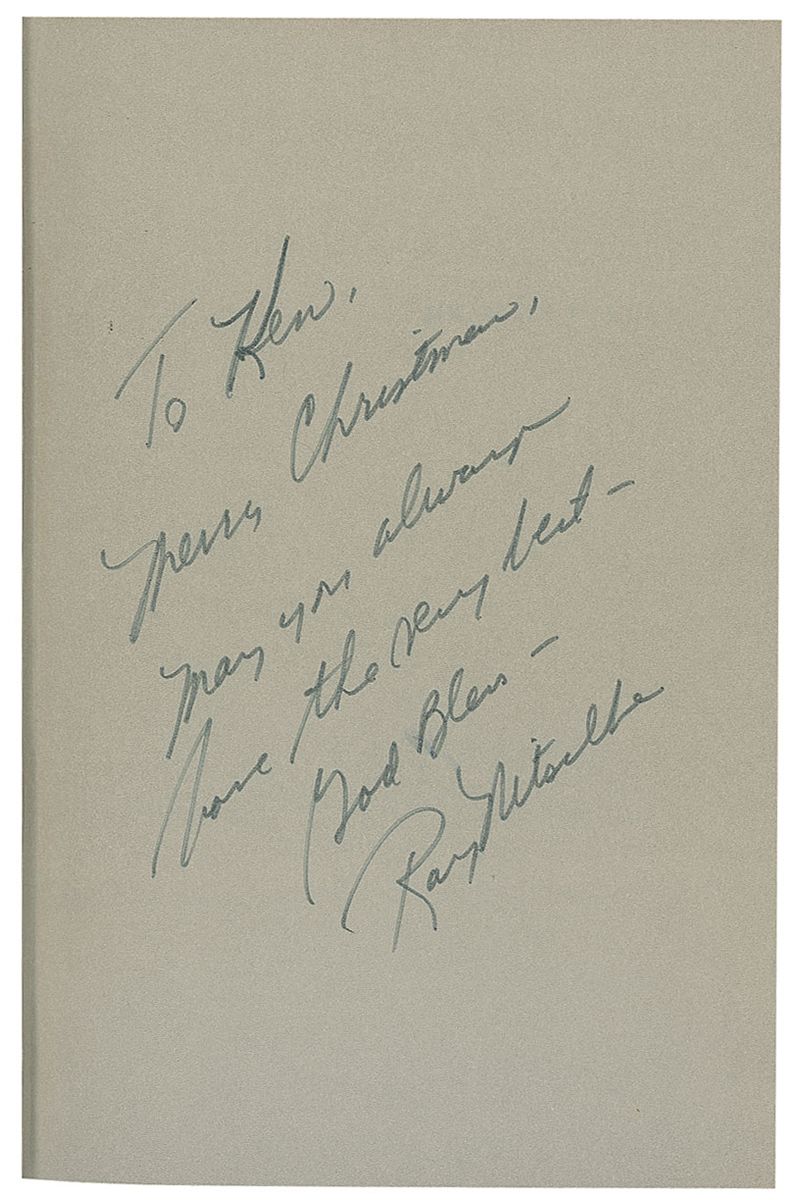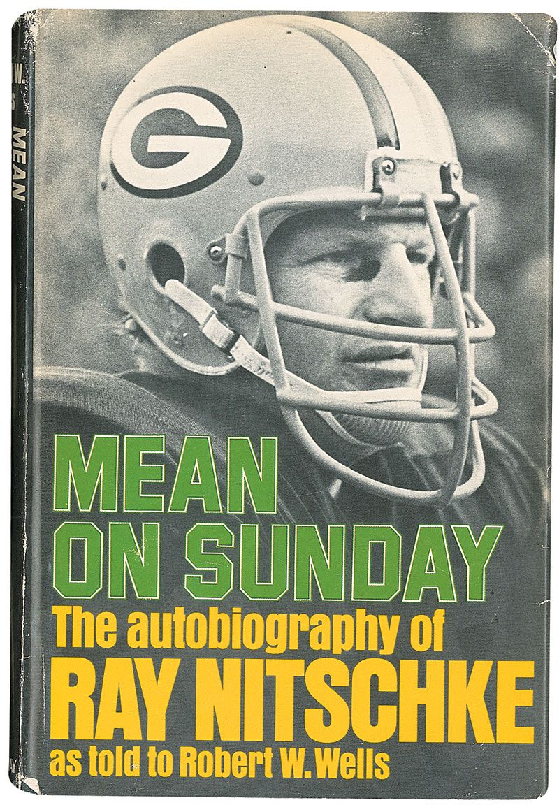 Signed book: Mean on Sunday. NY: Doubleday, 1973. Hardcover with dust jacket, 5.75 x 8.5, 302 pages. Signed and inscribed on the first free end page, “To Ken—Merry Christmas, may you always have the very best—God Bless—Ray Nitschke.” Scattered wear, toning, edge tears, and creases to dust jacket, otherwise fine condition.