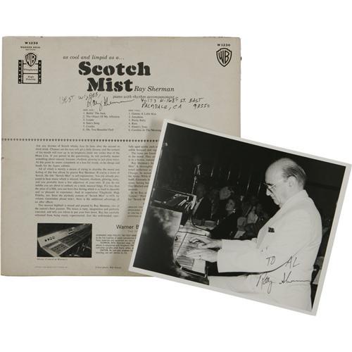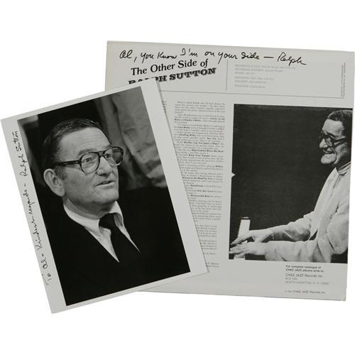 <B>Ray Sherman and Ralph Sutton Autograph Record and Photo Group of 8.</B></I> Ray Sherman "Scotch Mist' autographed by Ray Sherman (with autographed photo); Ralph Sutton "Knocked-out Nocturne" autographed by Ralph Sutton and Bob Haggart (with autographed photo); "The Other Side of Ralph Sutton" autographed by Ralph Sutton (with autographed photo), and "Bix Beiderbecke Suite and Piano Portraits" autographed by Ralph Sutton (with autographed photo). <I>From the Al White Autograph Archive.</B></I><BR><BR><b>Shipping:</b> Recordings (<a target="_blank" href="http://www.heritageauctions.com/common/shipping.php">view shipping information</a>)