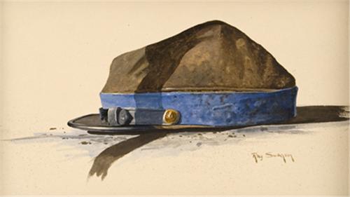 Ray Swanson (1937-2004), CAA. Pair of watercolors, each 8" x 14". (1) Civil War Confederate Kepi. (2) Civil War Union Campaign Hat. Both signed lower right. (est $3,000-4,000)