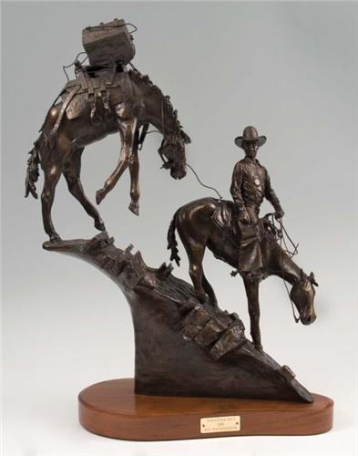 Ray Wattenhofer (20th Century). Bronze Sculpture. 25" tall. "Unpacking Salt". # 9/20. (est $1,000-2,000)