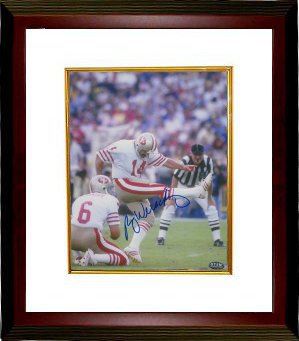 Ray Wersching joined the San Francisco 49ers in 1977. In Super Bowl XVI, Wersching tied a Super Bowl record by kicking 4 field goals, and his team won 26-21. He won another Super Bowl ring with the 49ers in Super Bowl XIX, who defeated the Miami Dolphins, 38-16. When he retired, Wersching held 49ers records for points, field goals and extra points. He is the twelfth player in NFL history to score 1,000 points in a career. Ray Wersching has hand autographed this San Francisco 49ers 8x10 Photo. GTSM Hologram and Certificate of Authenticity from Athlon Sports. Custom White Mat and Premium Mahogany Color Framed as shown.
