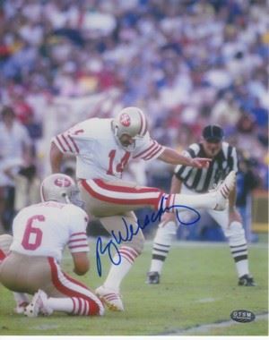 Ray Wersching joined the San Francisco 49ers in 1977. In Super Bowl XVI, Wersching tied a Super Bowl record by kicking 4 field goals, and his team won 26-21. He won another Super Bowl ring with the 49ers in Super Bowl XIX, who defeated the Miami Dolphins, 38-16. When he retired, Wersching held 49ers records for points, field goals and extra points. He is the twelfth player in NFL history to score 1,000 points in a career. Ray Wersching has hand autographed this San Francisco 49ers 8x10 Photo. GTSM Hologram and Certificate of Authenticity from Athlon Sports.