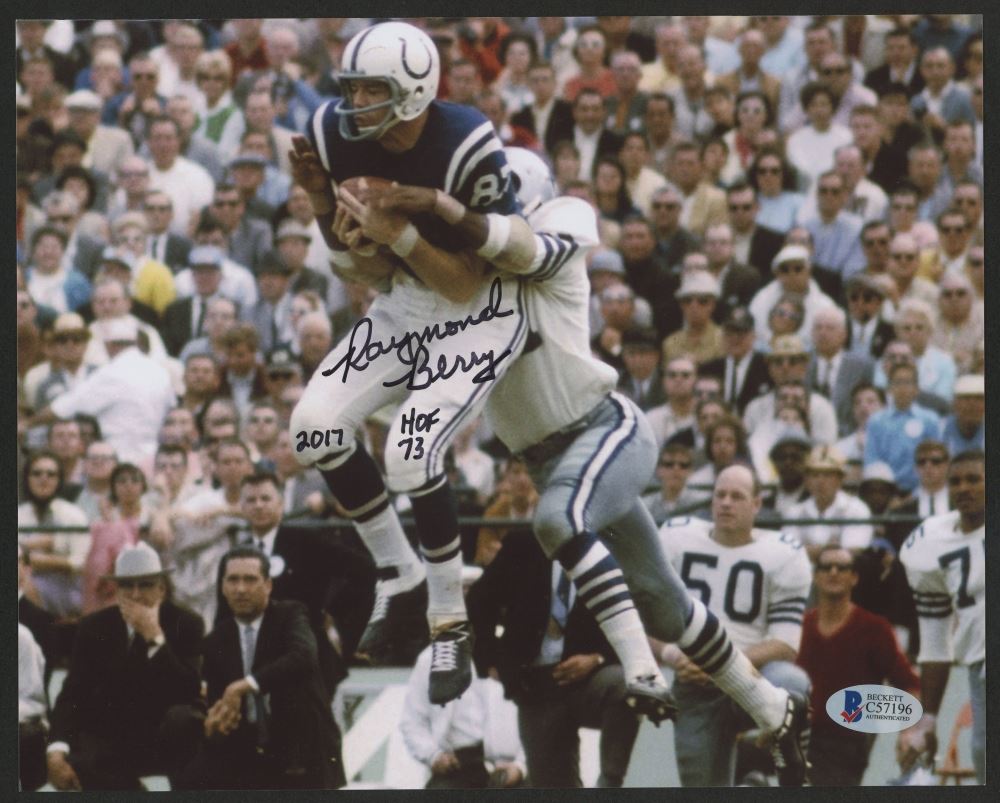 Photo measures 8" x 10" in size and has been hand-signed and inscribed in black felt-tip pen by Raymond Berry (HOF).